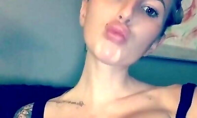 Scary sexy Bella Vendetta rubs her bald pussy and cums