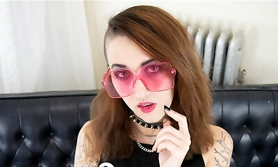 Geeky Goth babe demonstrates the guy who's boss here