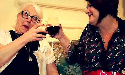 Mature girl-on-girl sluts lick each other and play with a dildo