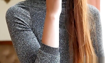 Slutty stepdaughter in torn shorts Natalie Knight is showing jummy pussy