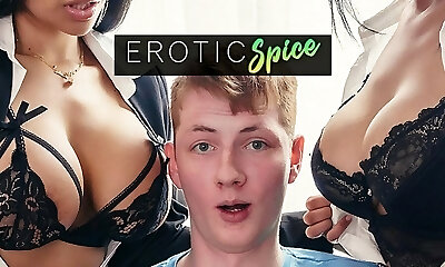 Handsome man with a stiff trunk teases Amelia Brookes and Bex Shiner