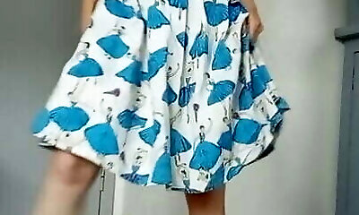 Leggy blondie in brief skirt and stockings Leah unclothes and dances