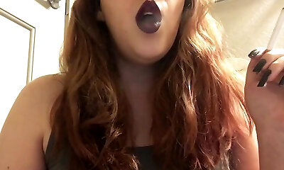 Mind-blowing Chubby Goth Teenage Smoking Red Cork Tip 100 Cigarette in Purple Lipstick