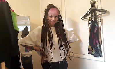 Emo giantess dominates tiny man with tits & boots