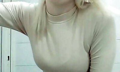 beautiful bbw in white tights with a hairy pussy, milks to a webca