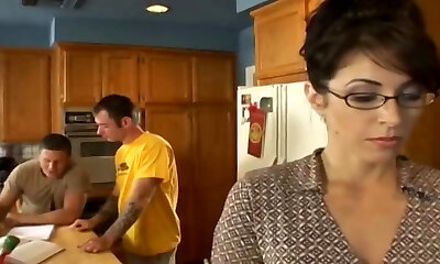 похотливая шатенка пума соблазнила своего соседа по кухне