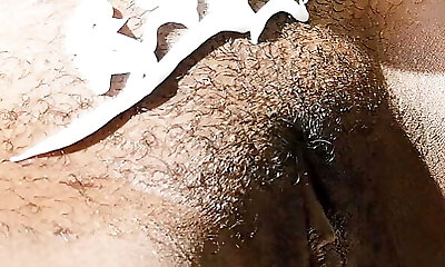 бреет свою маленькую эбонитовую попку и киску, а затем принимает чистый душ