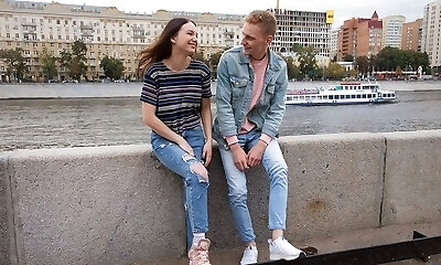 молодая русская цыпочка соблазнилась пикапом и устроила оргию с новым отцом
