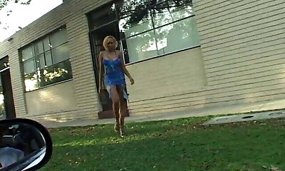 красотка выставляет напоказ свою фигуру на открытом воздухе и заглатывает его здоровенный член