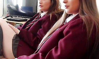 Six-fill teacher fucks pigtailed brunette schoolgirl three ways in class